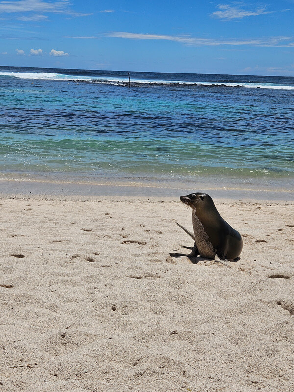 Punta Carola. To our surprise this beach was also full of sea lions playing and greeting people on the beach. The snorkelling here was