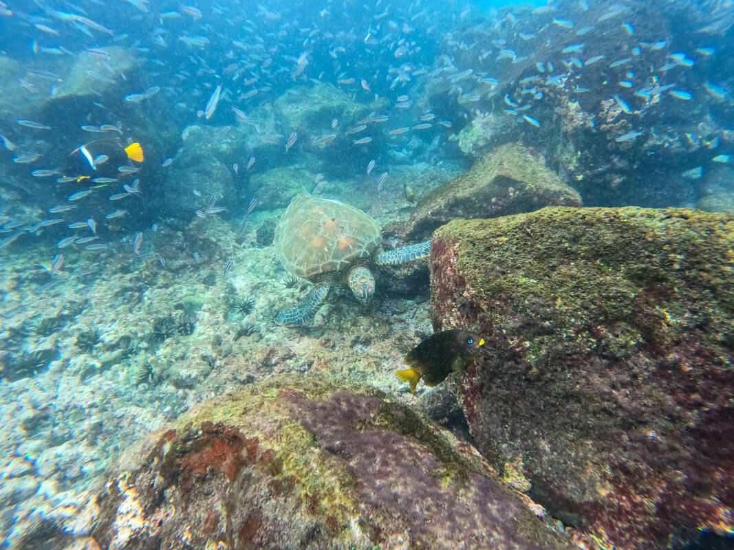 More than we had seen on Santa Cruz and we were also lucky enough to find a turtle close to the rocks eating plankton. Although it
